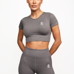 Gym King Formation Seamless Rib Short Sleeve Top - Gunmetal 4-6