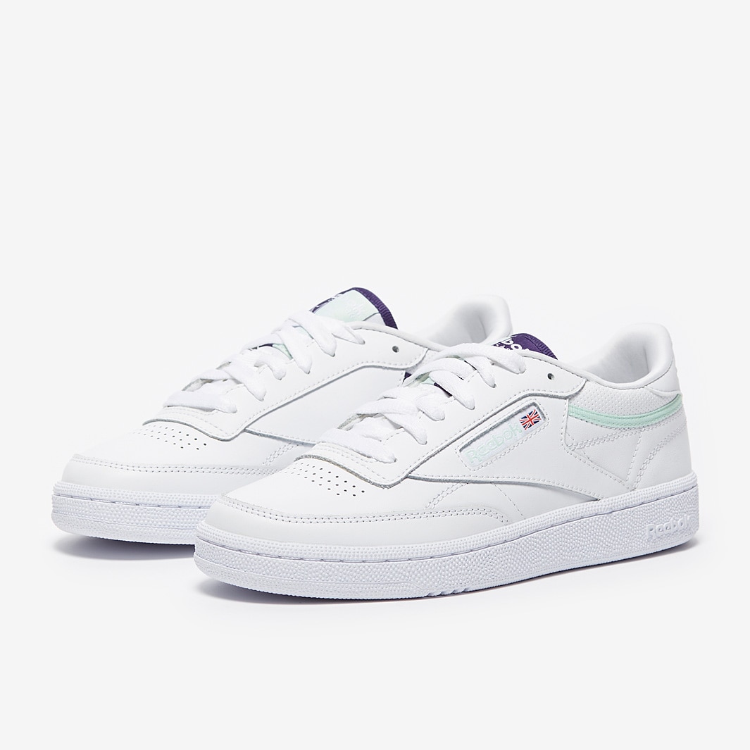 Choose a simple yet sophisticated wardrobe staple when you wear the Reebok Club C 85 in Ftwr White, Dark Orchid and Aqua Dust, the fresh and minimalistic trainer that showcases pops of colour and elegant branding to the tongue, heel and sidewall to complete and elevate your look. The Reebok Club C 85 is crafted with a leather upper for supple durability. Its laceup fastening gives you a customised and secure fit, while the perforated toe area encourages air flow for good ventilation. The textured outsole provides resilient traction that results in a great everyday shoe. Leather upper Woven label to tongue Reebok branding to the tongue, heel and sidewall Perforated toe area Laceup fastening Textured outsole