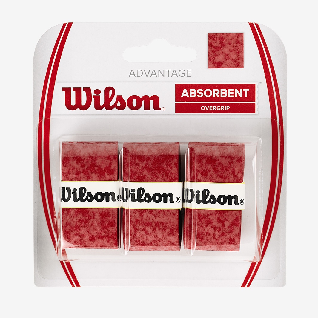 Ensure grip and control when you strike the ball using the Wilson Advantage Overgrip 3PK in Red, the ultraabsorbent tennis racket overgrip crafted with soft material for high comfort and easy gripping. Designed with your comfort and performance in mind, the Wilson Advantage Overgrip 3PK is ideal for moist conditions or heavy perspiration, with a highly absorbent and smooth surface that ensures an irritationfree finish. Suited to all tennis rackets, this thin overgrip enhances your grip and performance for a fresh feeling throughout the game. This pack includes three overgrips. Soft material for high comfort and easy gripping Ideal for moist conditions or heavy perspiration Ultra absorbent Suited to all tennis rackets Set of 3 0.55mm thickness Smooth surface Material microfiber substrate, polyester, rayon
